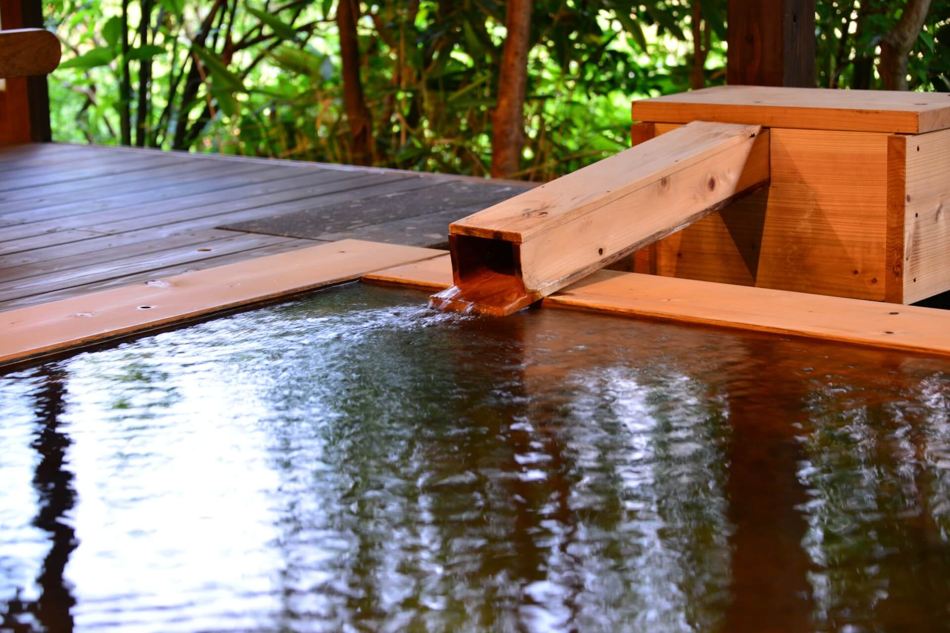 平屋タイプの離れ客室は、高台から開けた景色が目の前に広がる半露天風呂とシャワー室をご用意。